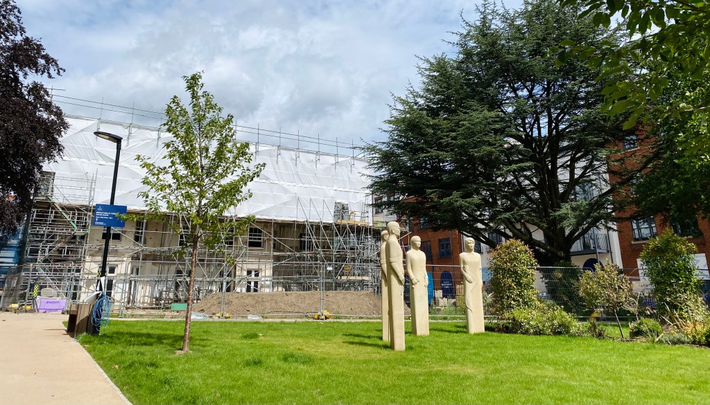 So today I need to explore some old wounds that I’m not aware of having looked at properly for at least a decade. I’ve written a poem about them this morning, and I might quote a bit of it as I go on this afternoon, (or not), but I need to declare that I am not a dispassionate observer (if there is ever such a thing) when it comes to looking at the BrightWell’s Yard development in central Farnham (the focus of my residency work). Investigating these old wounds means bringing all of the 50+ Kate to listen, with as much compassion as she can muster, to the under 30 Kate who was Education Director at the Redgrave Theatre, Farnham in 1997, and whose office was upstairs in BrightWell house (the eponymous centre of the new development).