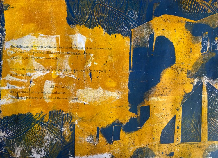 I am experimenting with ways to combine, layer and merge photography, painting, printing and poetry around four main themes:
